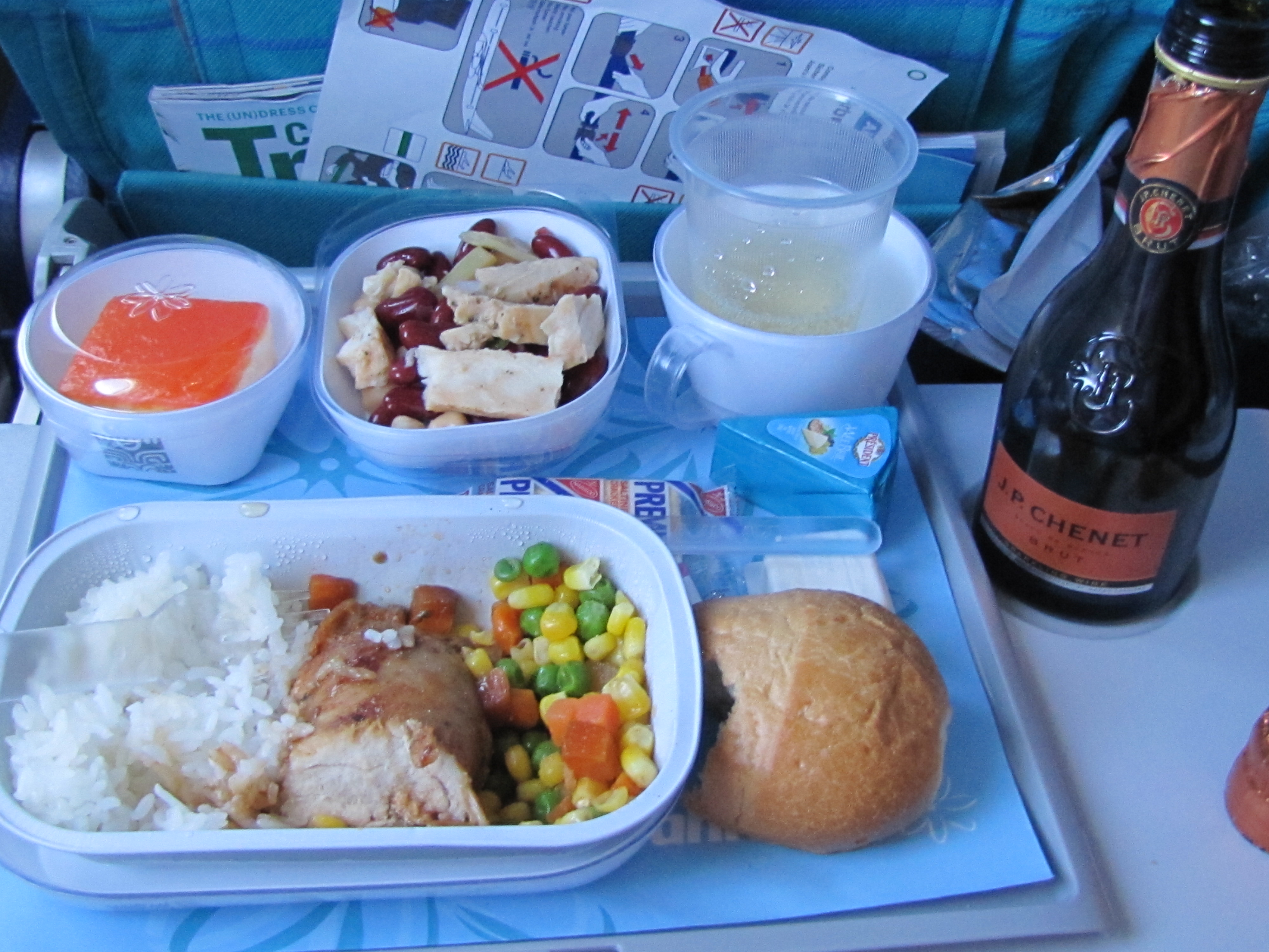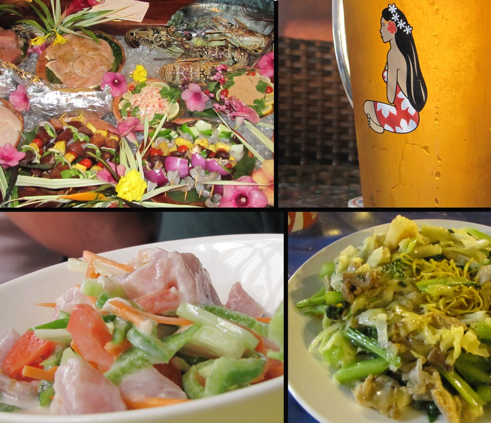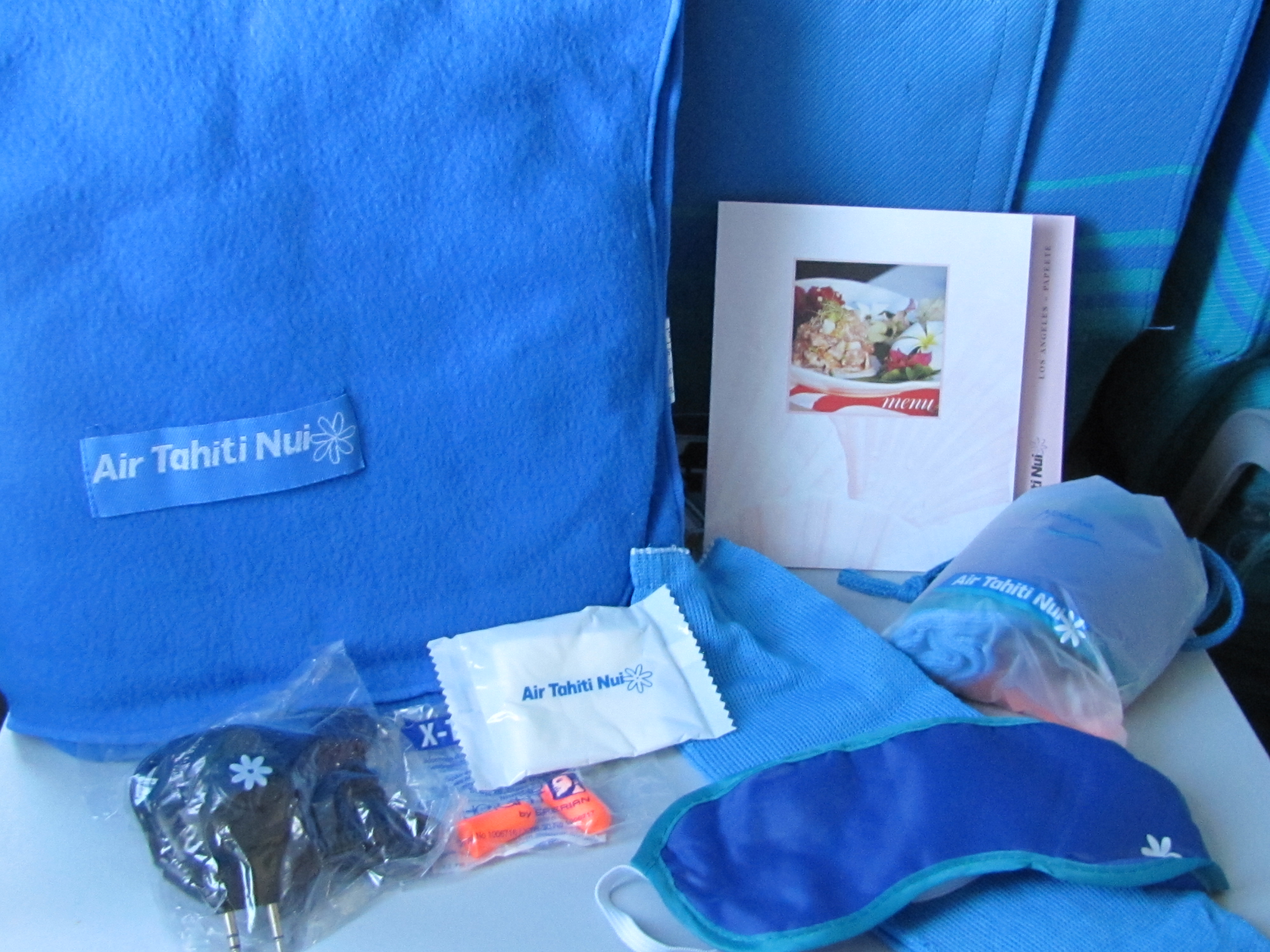 While I am all for earning and redeeming frequent flier points, you have to be realistic. Some people don’t mind sacrificing comfort for expense. From the moment you board Air Tahiti Nui, you know you are on vacation. The relaxing turquoise blue textiles and Tahitian gardina flowers on the wing tips set the tone for the flight to come. The crew, comprised of beautiful Polynesian women and buff men, take extra special care of you during your 8 hour flight from LAX to Papeete. All beer, wine and spirits are complimentary in First, Business and Coach classes as well as a delicious hot dinner and cold snack throughout the flight. Your seat has a personal TV which allows you the opportunity to watch at least 6 different movies, play poker, Tetris and golf against other passengers on the plane.
