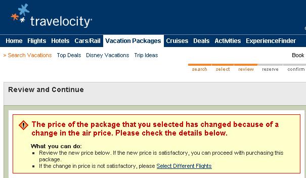 *But, and it’s a giant but if you ask me– while trying to book this trip, I made it to the final stages and Travelocity shows a message and suddenly tells me that the package price has changed because of airfare.