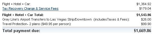 In 3rd place: Travelocity package at $1543.96