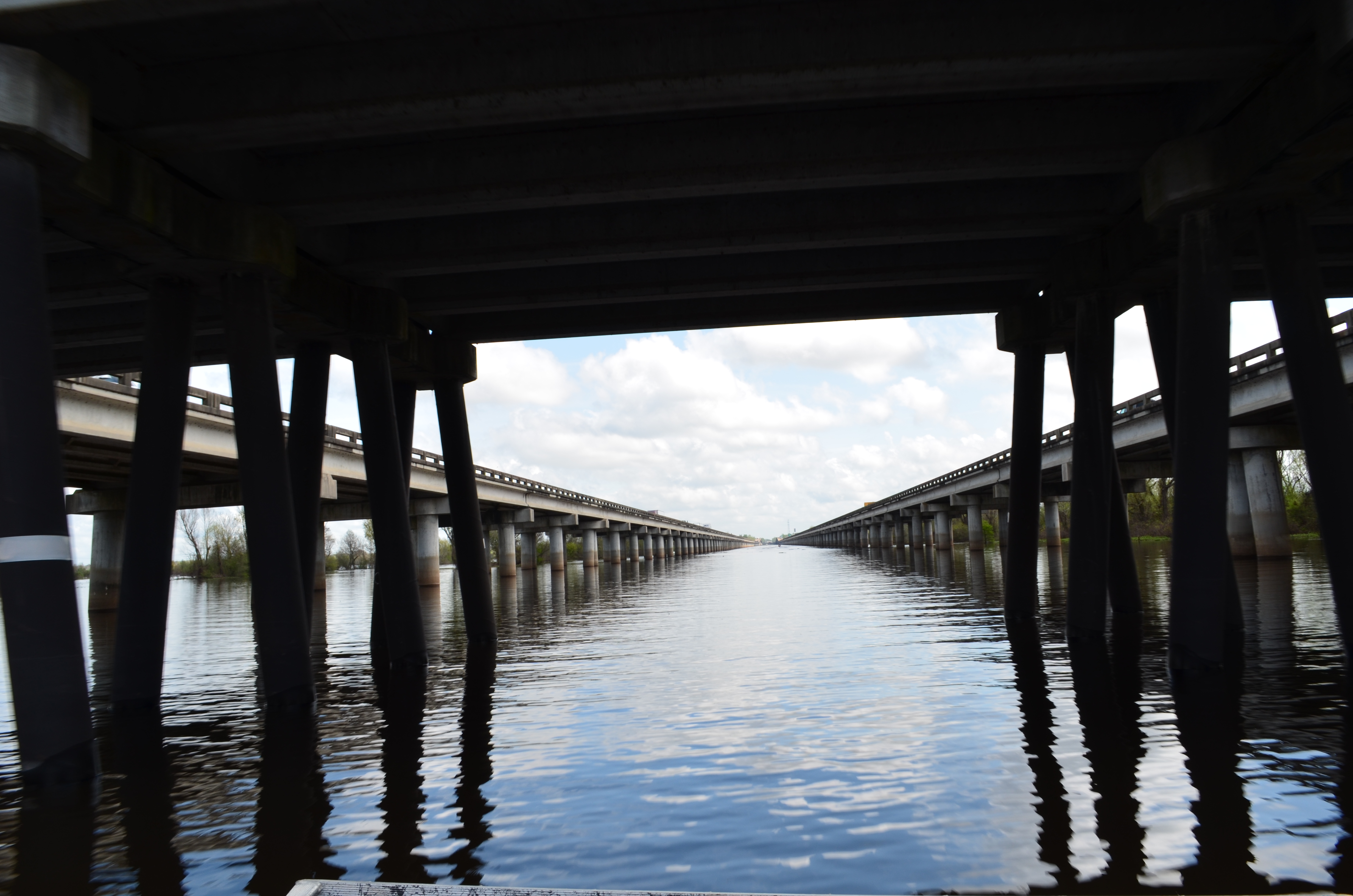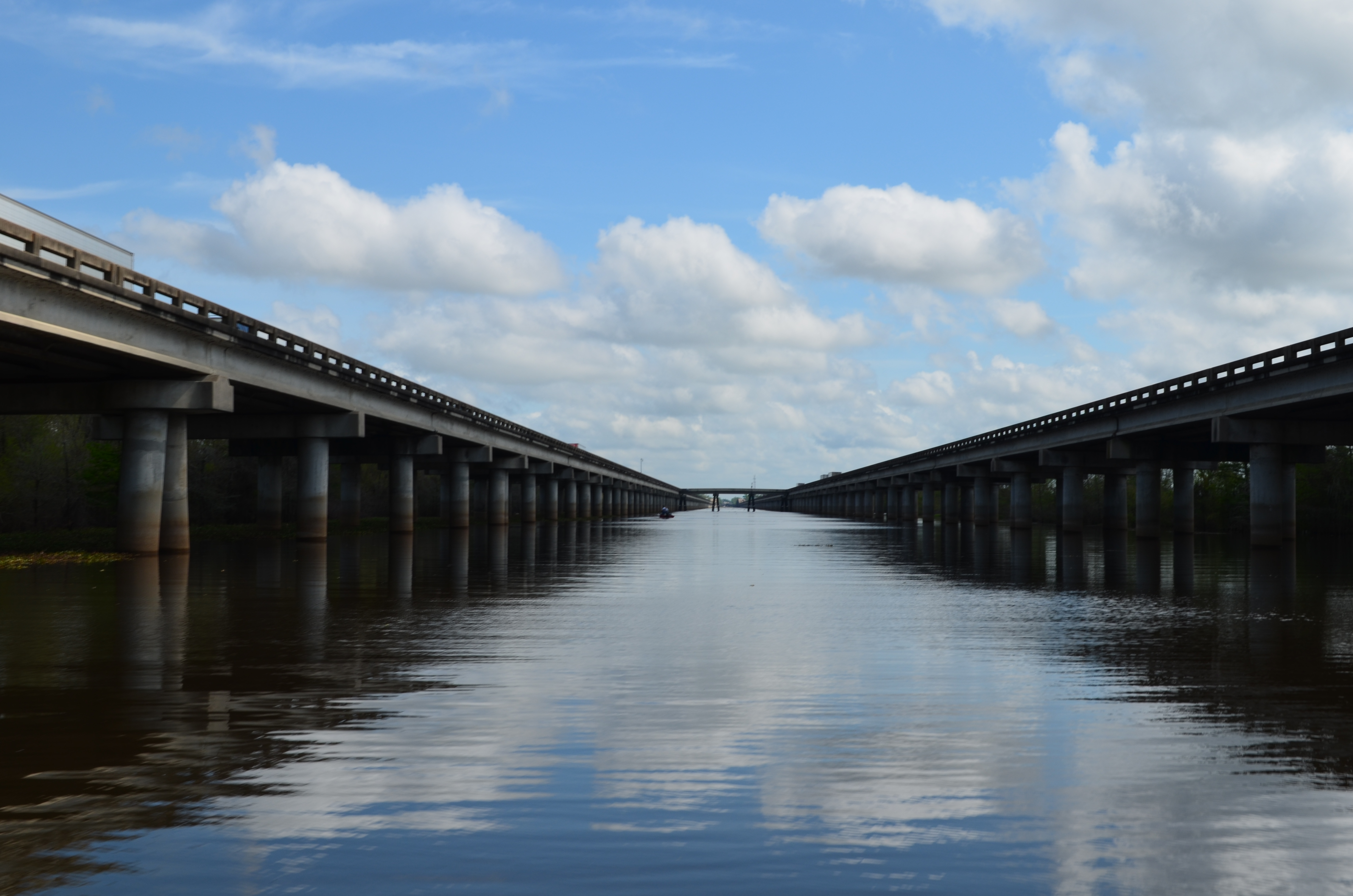 My co-worker turned friend is from Phoenix– the farthest thing from swampland– so she decided we were most certainly going to do a swamp tour. In all my years of driving I-10 from Houston to New Orleans, never once had the thought crossed my mind that we would someday boat around the murky black waters below. In fact, I’m still scarred from that one episode of Rescue 911 when the truck drivers dove in after a car accident victim who had been thrown off the bridge. NIGHTMARE.